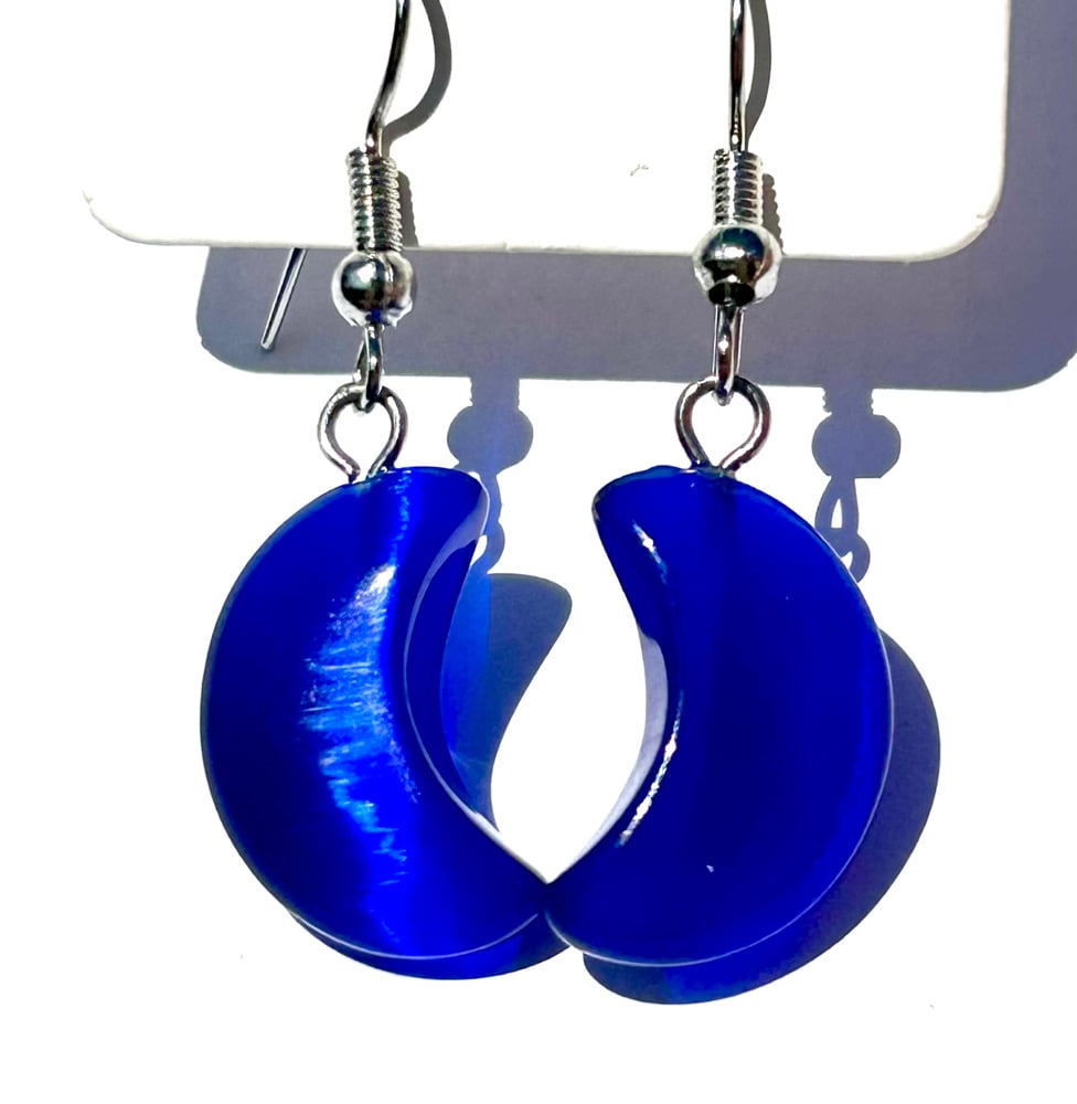 One pair of blue Catseye moon dangle earrings.