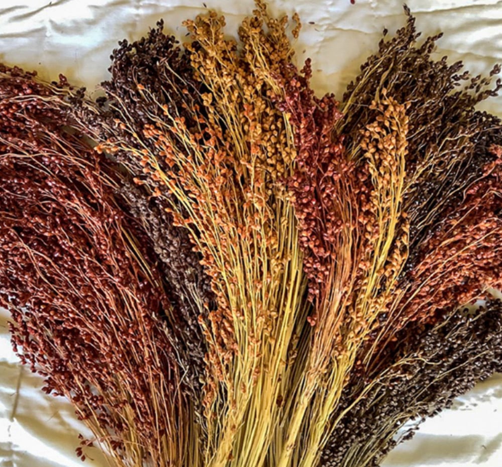 These heirloom broom corn seeds produce tall, sturdy plants known for their long, brightly colored seed heads traditionally used in hand-crafted brooms, wreaths, and ornamental crafts.