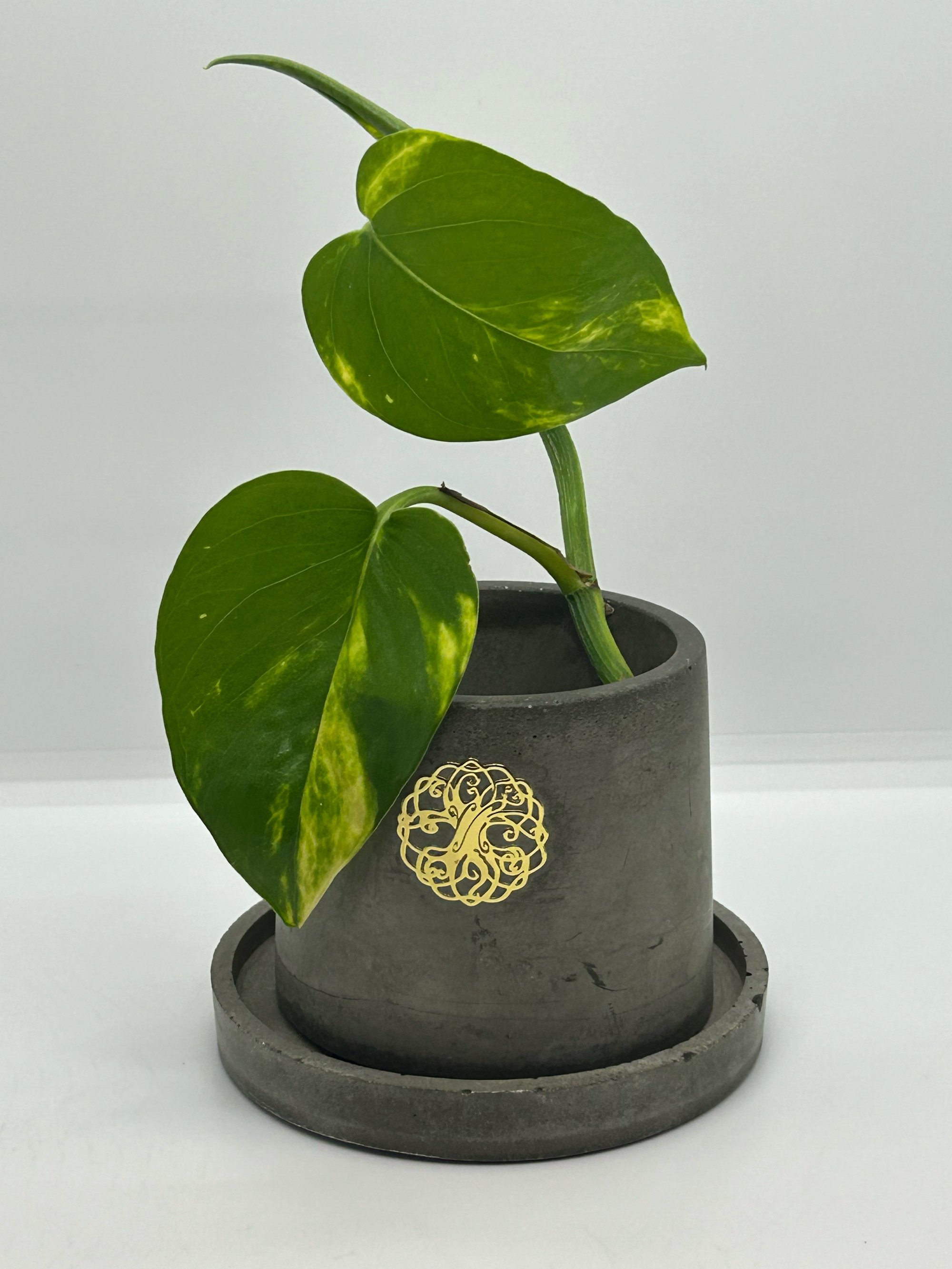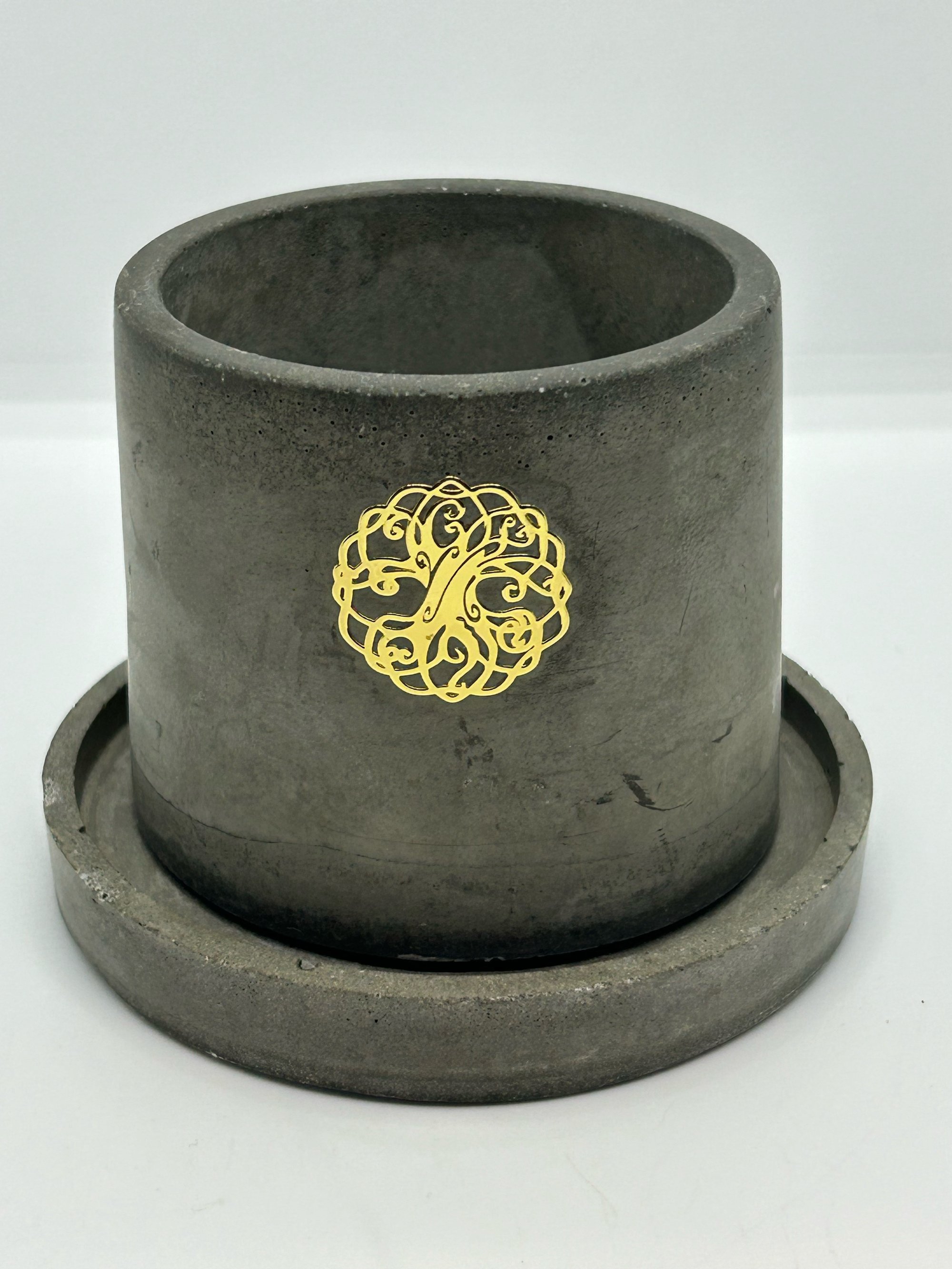 Handmade 3”x3” circular cement pot with mismatched drip plate.