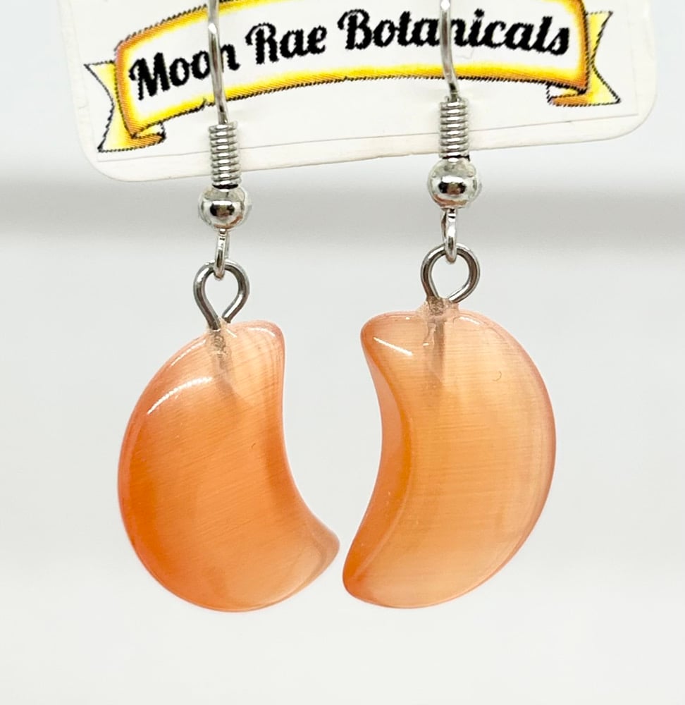 One pair of Peach Catseye moon earrings.